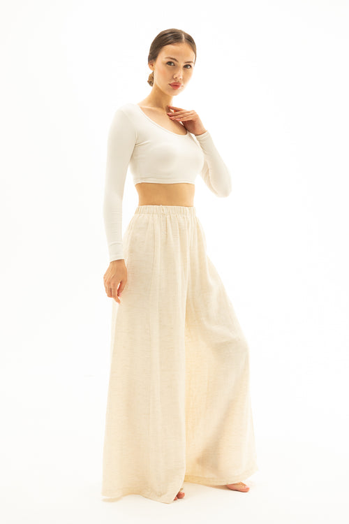 Beli Lastikli Müslin Keten Kumaş Pantolon