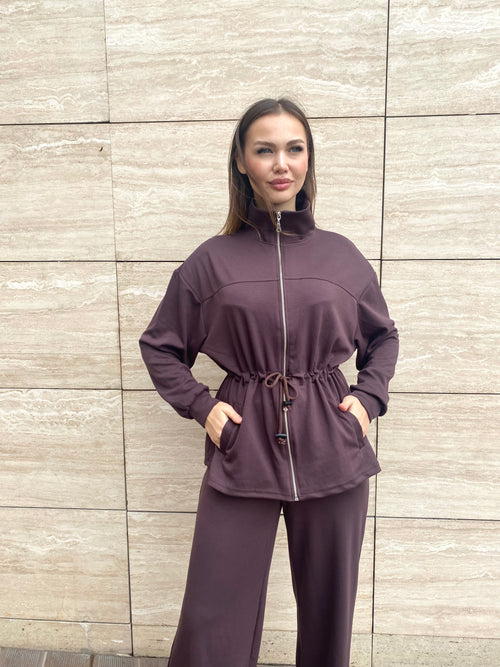 Beli Bağlamalı Modal Kahverengi Kadın Eşofman Takımı